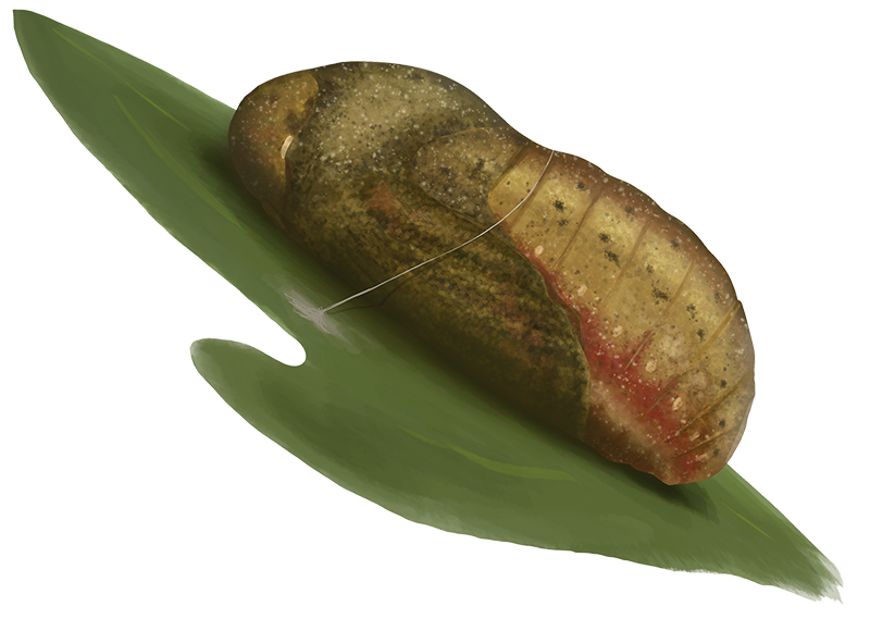 Die Verpuppung erfolgt im zeitigen Frühjahr zu einer Gürtelpuppe an bodennahen Teilen ihrer Nahrungspflanze. Die Puppen sind grünlich bis bräunlich, mit schwarzen Punkten und einer weinroten Linie an den Seiten.