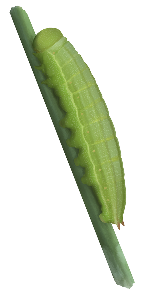 Die Eiablage findet an verschiedenen Süßgräsern wie Straußgras (